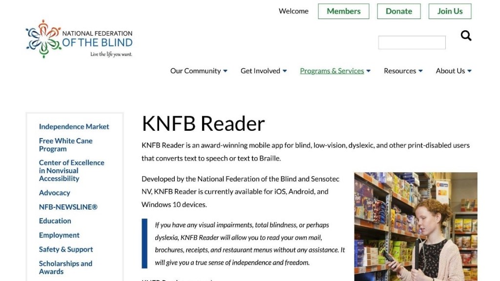KNFB Reader is a mobile application designed as an assistive technology for people who are blind or visually impaired. It uses Optical Character Recognition (OCR) to capture printed text through a smartphone camera and convert it into speech or readable text.